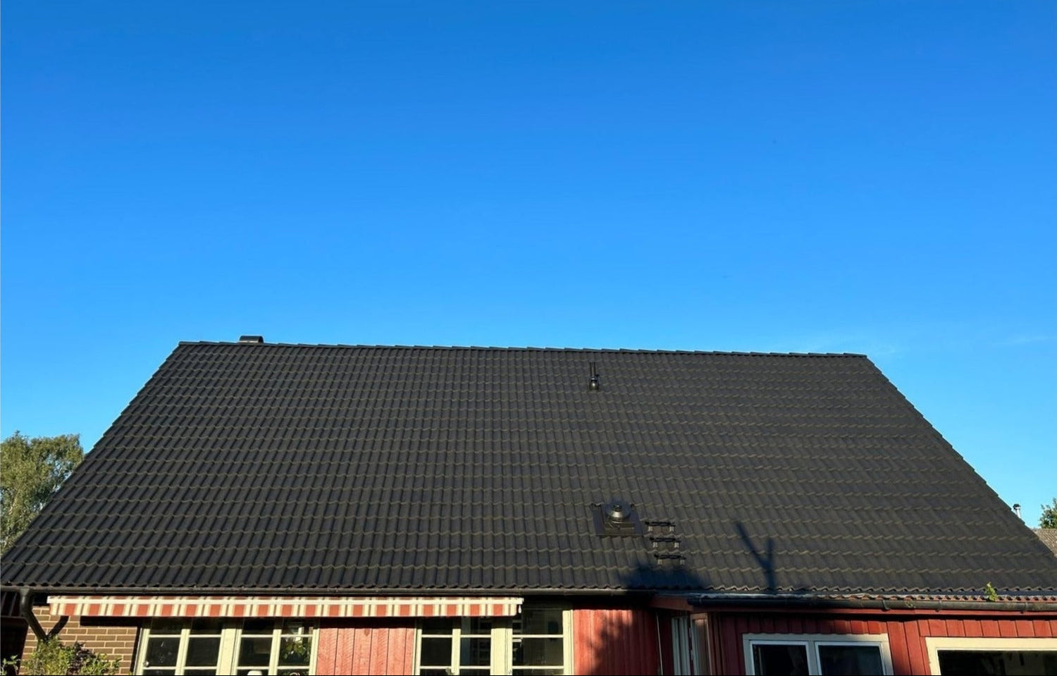 I Skånes fuktiga klimat rekommenderar vi alltid en efterföljande behandling. Det håller taket rent längre och motverkar att ny mossa och alger får fäste under de kommande åren.